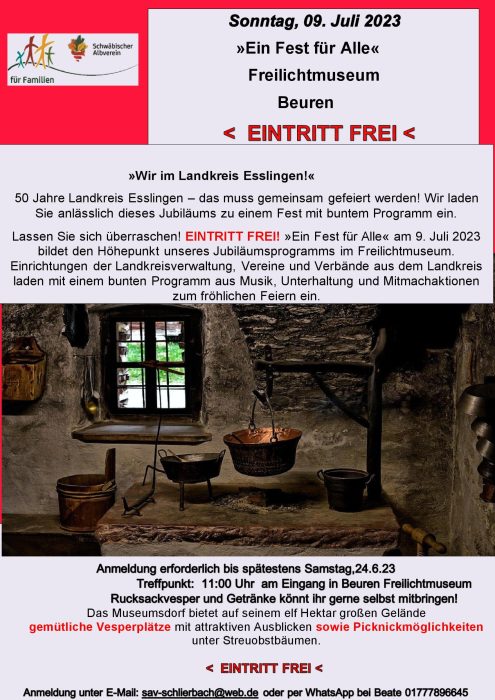 Ein Fest für Alle – Freilichtmuseum Beuren So., 09.07.2023, Uhrzeit: 00:00 iCalendar Mit dem Laden der Karte akzeptieren Sie die Datenschutzerklärung von Google.Mehr erfahren Karte laden Google Maps immer entsperren zur Übersicht