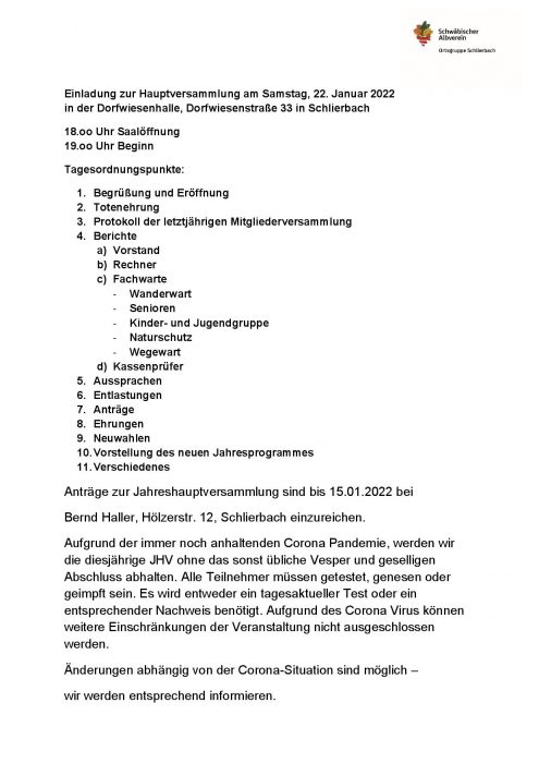 Jahreshauptversammlung – Dorfwiesenhalle Sa., 22.01.2022, Schlierbach Uhrzeit: 18:00 Ort: Dorfwiesenhalle Dorfwiesenstraße 73278 Schlierbach iCalendar Mit dem Laden der Karte akzeptieren Sie die Datenschutzerklärung von Google.Mehr erfahren Karte laden Google Maps immer entsperren zur Übersicht