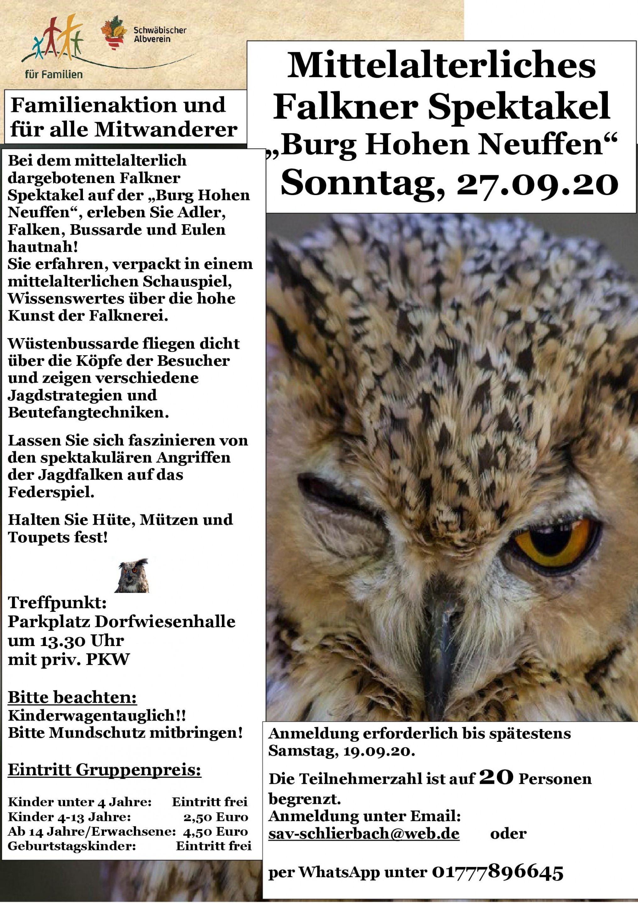 „Mittelalterliches Falknerei Spektakel„ (siehe Anhang).