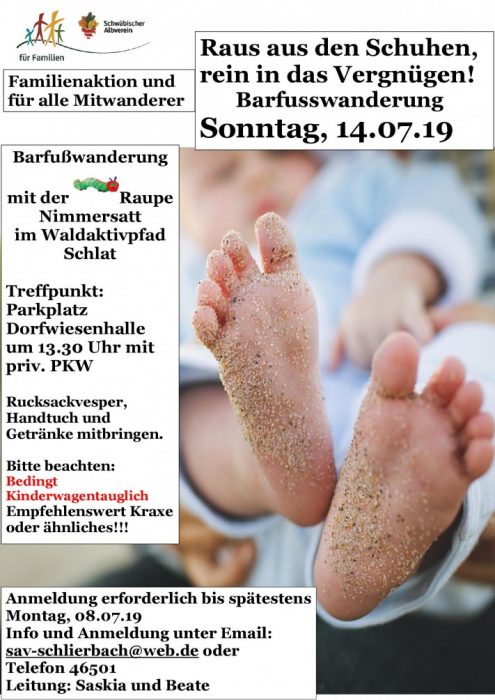 Raus aus den Schuhen- rein in das Vergnügen Barfußwanderung mit der Raupe Nimmersatt / Familienwanderung